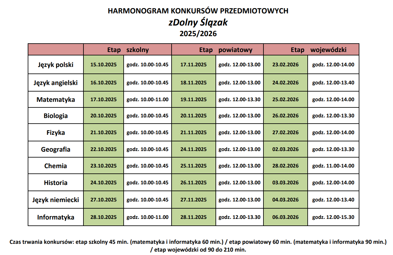 - 15 października rozpoczęły się przedmiotowe konkursy zDolny Ślązak, kierowane do uczniów klas 4-8. W ramach etapu szkolnego potrwają one do końca października.